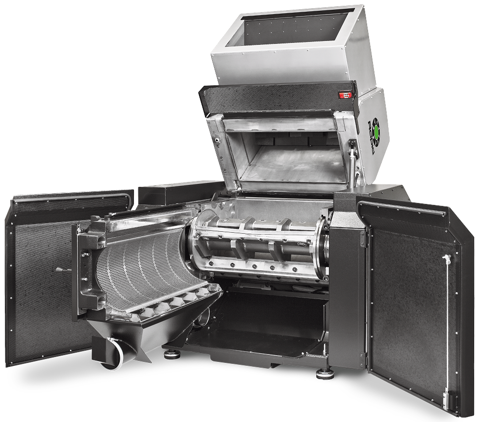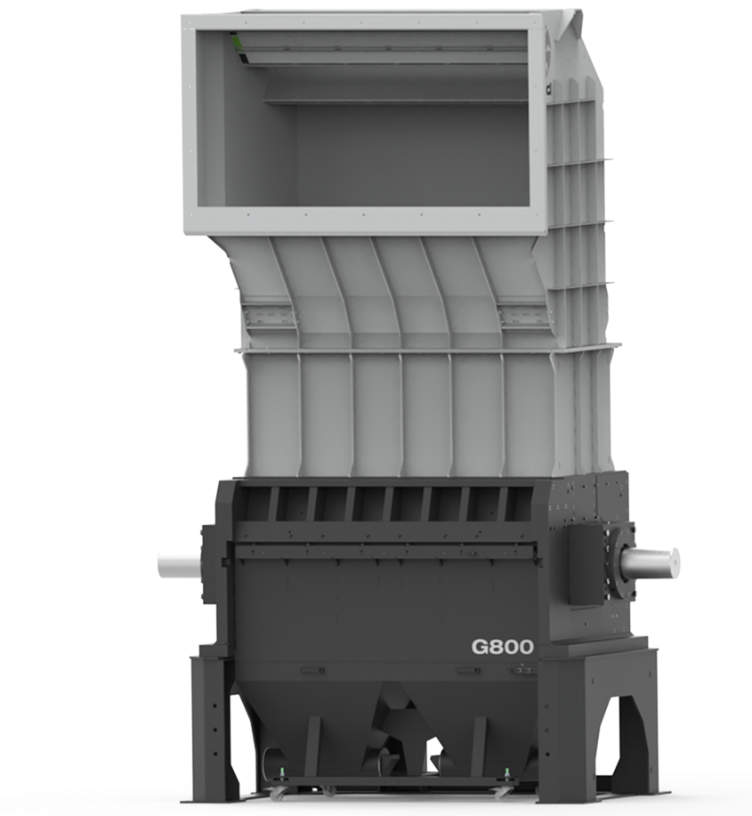 - Granulador de resíduos esqueléticos com baixo nível de ruído, disponível em três larguras: 600, 900 e 1200 mm.