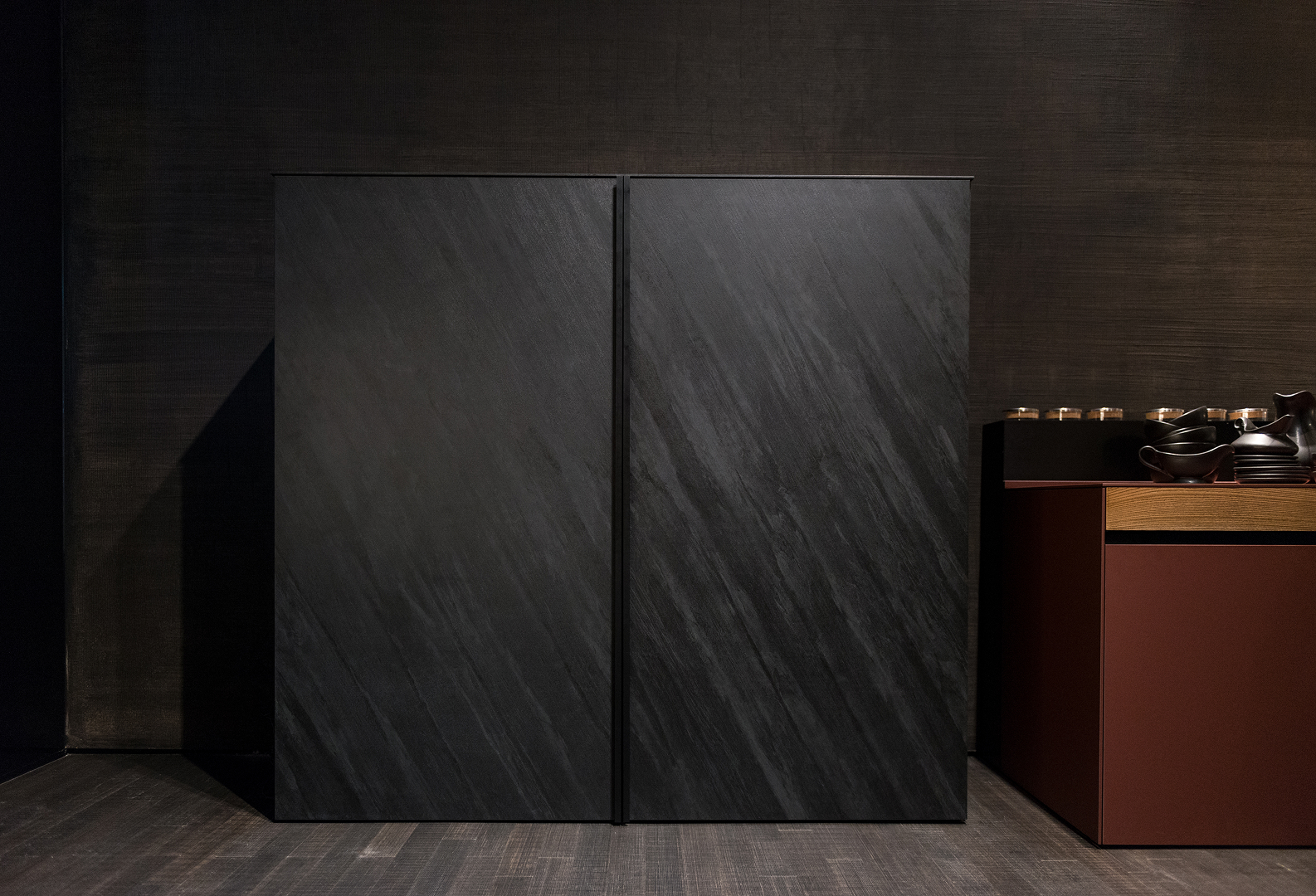 Superfícies com textura profunda e caráter expressivo, que combinam intensidade tátil com tecnologia anti-impressões digitais. O acabamento ultra-mate e a elevada resistência tornam-nas ideais para projetos contemporâneos que valorizam design, durabilidade e experiência sensorial.