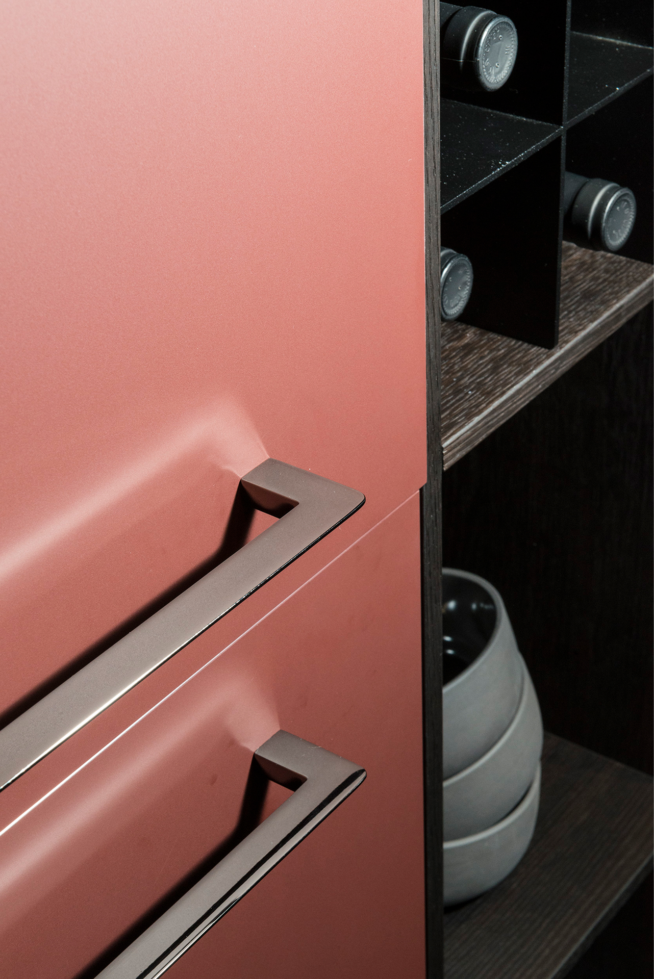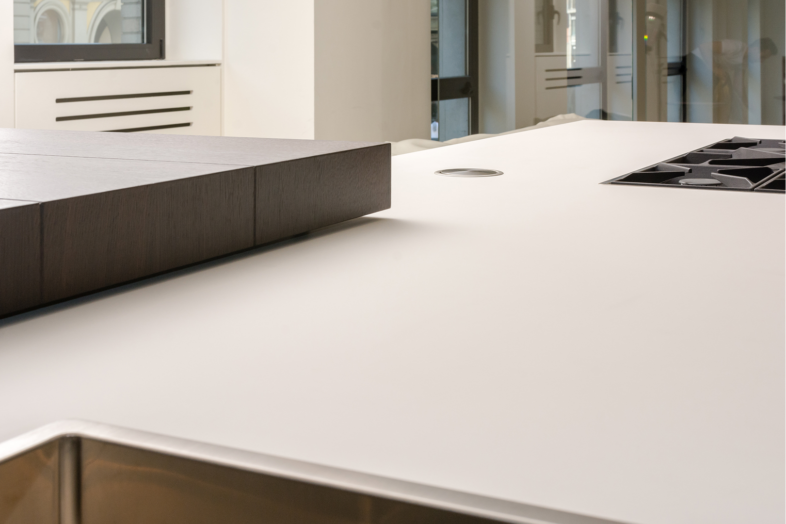O FENIX NTM destaca-se pelo acabamento super mate, toque suave e baixa refletividade da luz. Resistente a impressões digitais e com reparação térmica de micro riscos, é ideal para interiores de alto desempenho, combinando durabilidade, funcionalidade e estética contemporânea.