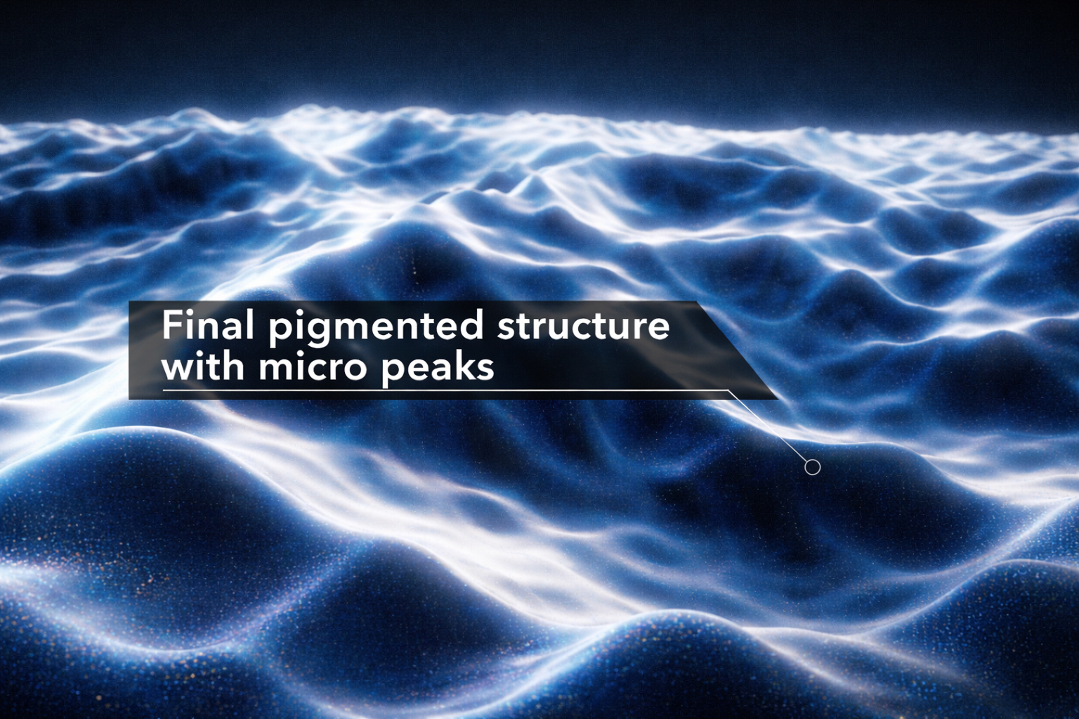 Quando observada ao microscópio, a estrutura do FENIX assemelha-se a uma paisagem com picos e vales irregulares. Quando as ondas de luz atingem a superfície, o ângulo de incidência não é uniforme em toda a área, fazendo com que a luz seja refletida em diferentes direções. É este fenómeno que confere ao FENIX o seu acabamento mate.