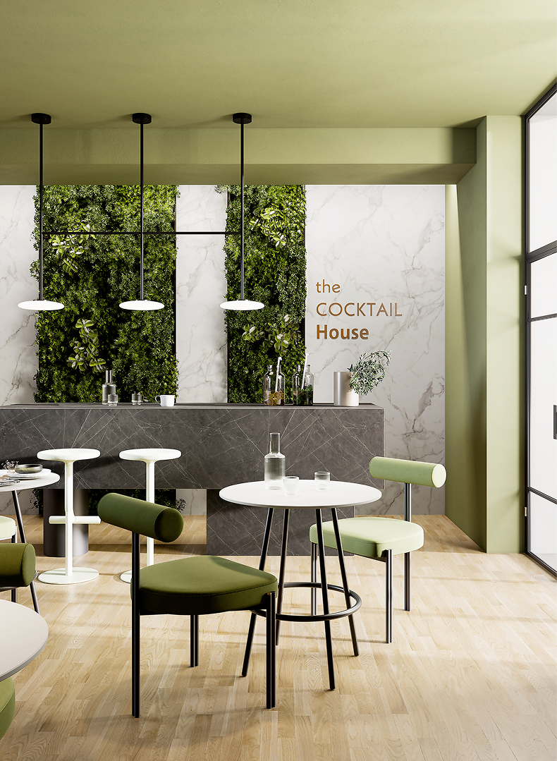 Com uma coleção de cores sólidas, padrões e madeiras inspiradas nas tendências atuais, os laminados FORMICA adaptam-se a múltiplos contextos de decoração interior: residenciais, comerciais e institucionais. A sua elevada durabilidade reduz a necessidade de substituições frequentes, promovendo a eficiência de recursos e o compromisso com a sustentabilidade.